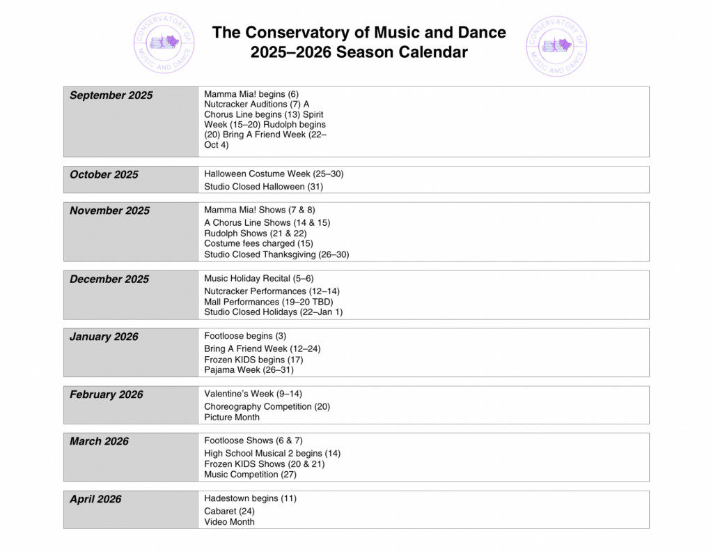 UPCOMING EVENTS/CALENDAR and HOLIDAYS