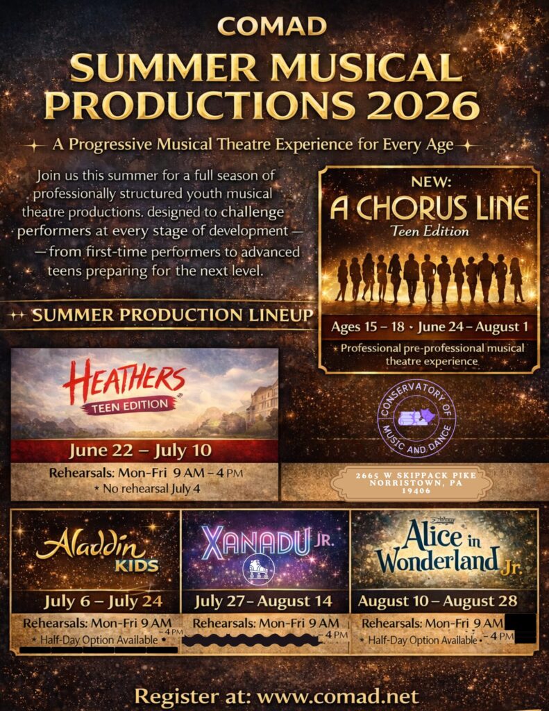 Give your child a summer they’ll never forget Explore creativity, build confidence, and perform on stage with COMAD Summer Camps